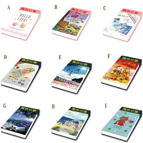 燙金廣告尺寸:7.5*3CM 內頁尺寸:10.3*15.3CM 底座尺寸:10.6*20CM 膠檯顏色:粉、黑 封面可搭配不同膠檯顏色 ** 封面、封面裡、 內頁 皆可依需求客製** *本產品圖片及顏色、材質皆以實物為準。*