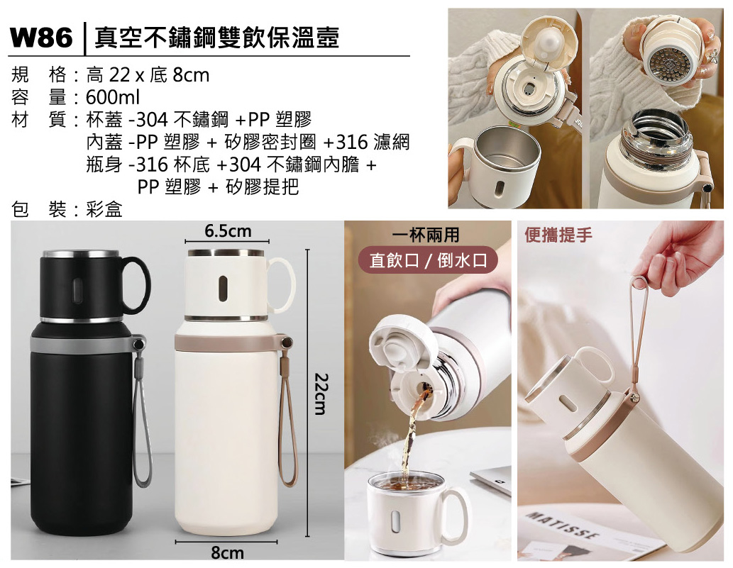 真空不鏽鋼雙飲保溫壺