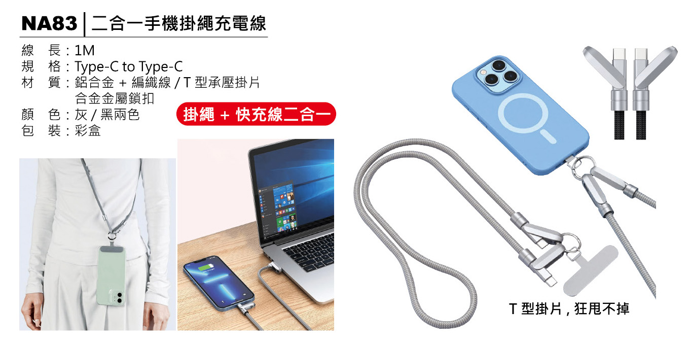 2合1手機掛繩充電線